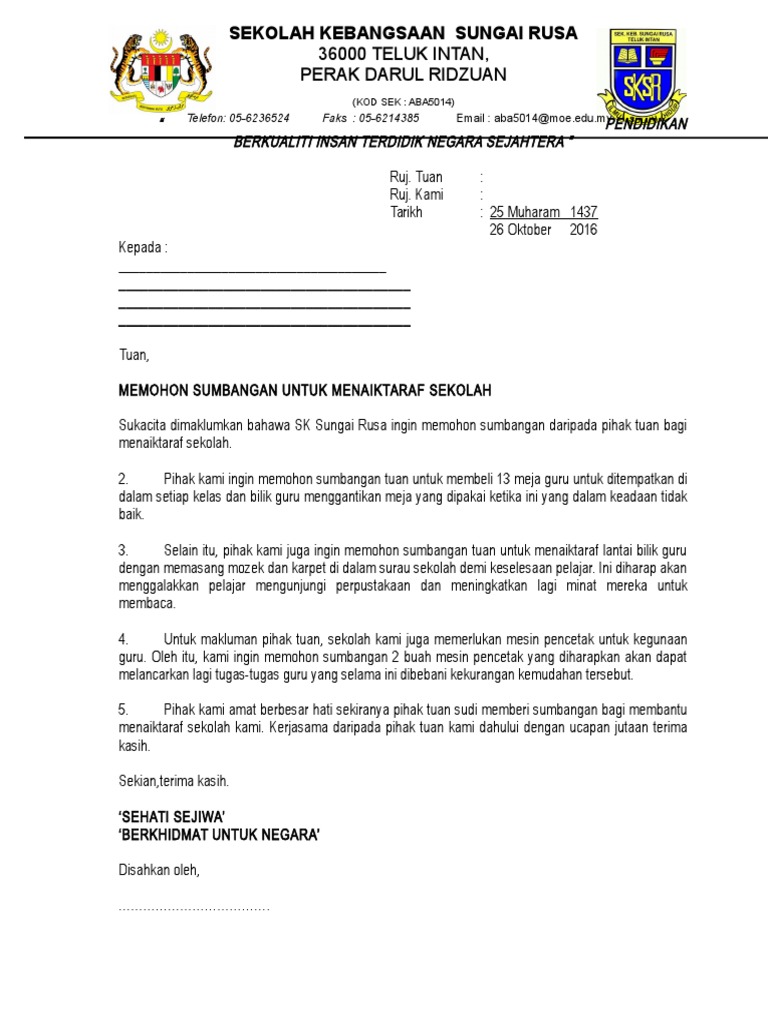 Surat Memohon Sumbangan Naik Taraf Surau Pdf