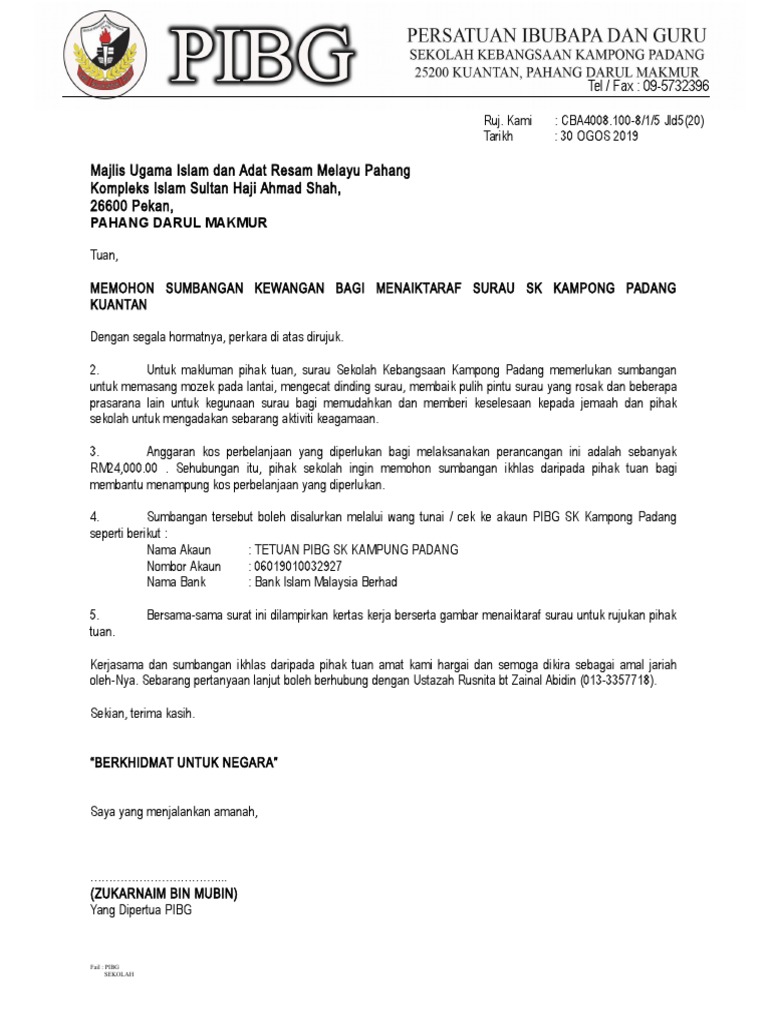 Surat Mohon Sumbangan Naik Taraf Surau Muip Pdf